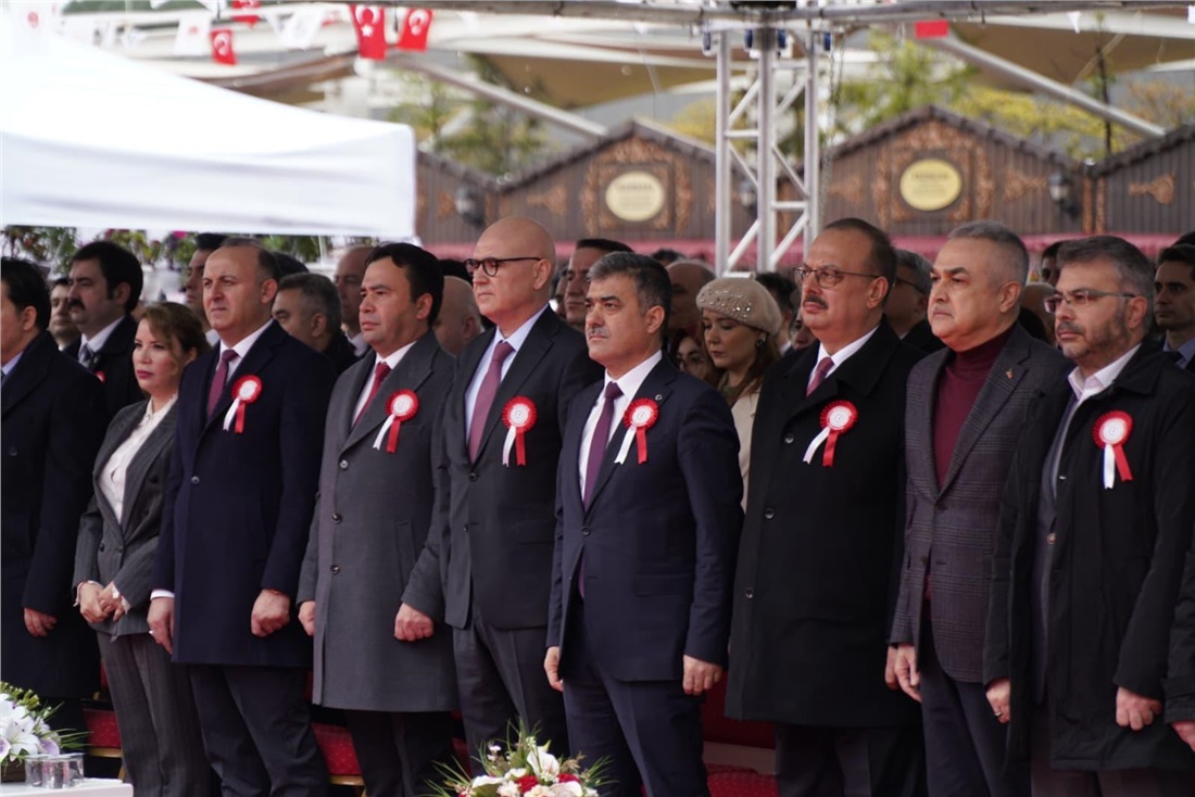 Saygı duruşu ve İstiklal Marşı ile başlayan program, halk oyunları gösterileri ve Aydın Büyükşehir Belediyesi Kadın Mehter Takımı’nın performansıyla devam etti.